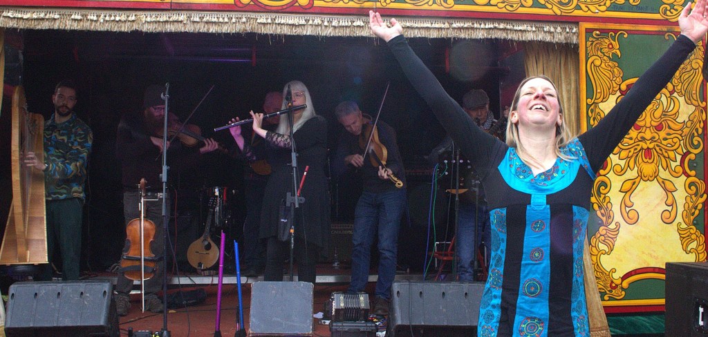 A band who play Irish and Scottish traditional music on fiddles, flute, whistles, mandolins, guitar and harp